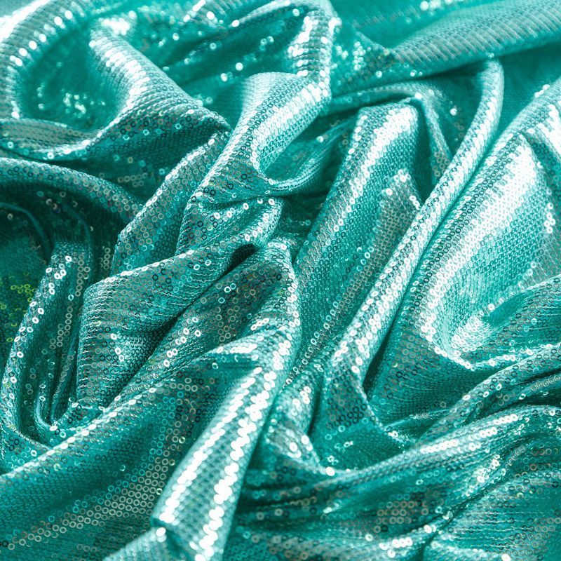 Пайетки на трикотаже 055-08983 мятно-бирюзовый однотонный