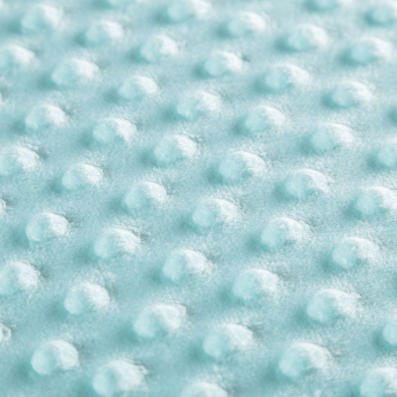 Мягкое, нежное, приятное на ощупь, с гладкой текстурой, красивым блестящим эффектом. Фактура – пузырьки. На лицевой стороне мягкий ворс 1 мм. Изнаночная сторона  — гладкое  трикотажное полотно без ворса. Используется  для пошива покрывал, пледов, одеял, бортиков в кроватку, конвертов для новорождённых, мягких игрушек, комбинезонов, пижам, домашней одежды, лежанок для домашних питомцев.