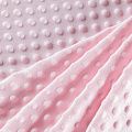 Мягкое, нежное, приятное на ощупь, с гладкой текстурой, красивым блестящим эффектом. Фактура – пузырьки. На лицевой стороне мягкий ворс 1 мм. Изнаночная сторона  — гладкое  трикотажное полотно без ворса. Используется  для пошива покрывал, пледов, одеял, бортиков в кроватку, конвертов для новорождённых, мягких игрушек, комбинезонов, пижам, домашней одежды, лежанок для домашних питомцев.