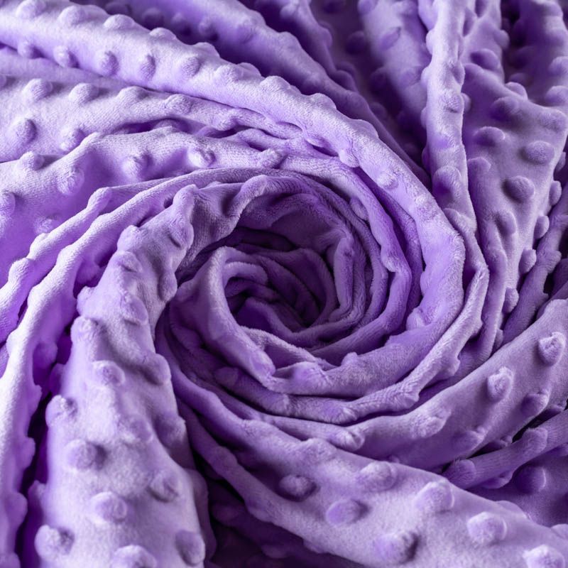 Мягкое, нежное, приятное на ощупь, с гладкой текстурой, красивым блестящим эффектом. Фактура – пузырьки. На лицевой стороне мягкий ворс 1 мм. Изнаночная сторона — гладкое трикотажное полотно без ворса. Используется для пошива покрывал, пледов, одеял, бортиков в кроватку, конвертов для новорождённых, мягких игрушек, комбинезонов, пижам, домашней одежды, лежанок для домашних питомцев.