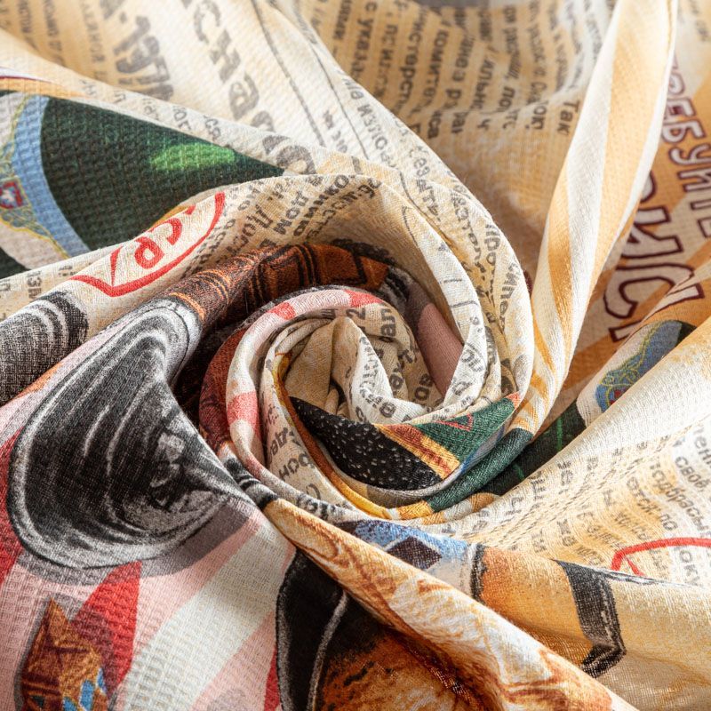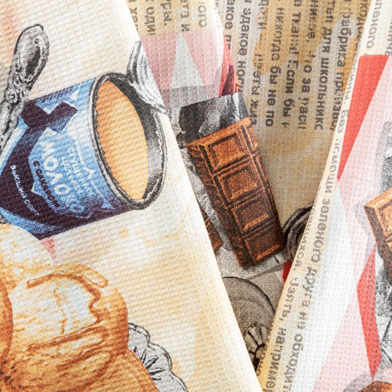Качественная натуральная хлопчатобумажная ткань, обладающая высокой гигроскопичностью, с "газетным принтом". Универсальный материал, из которого  шьют кухонные полотенца, скатерти, прихватки, салфетки.