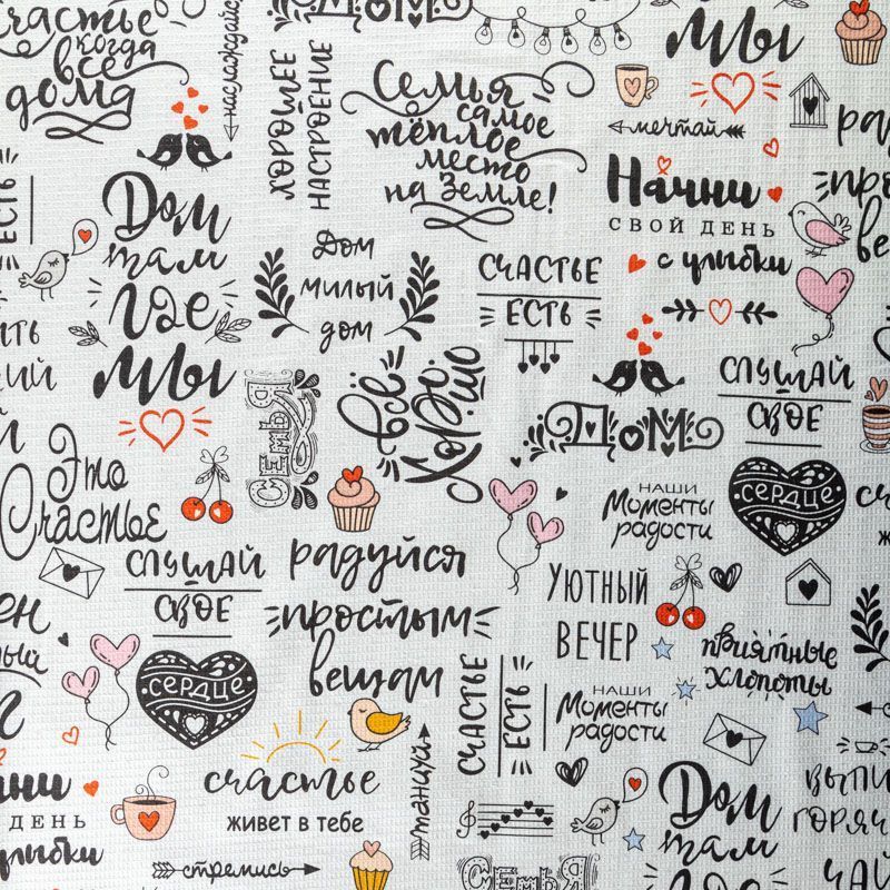Полотно вафельное 007-03527 белый принтованный