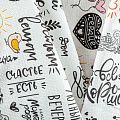 Качественная натуральная хлопчатобумажная ткань, обладающая высокой гигроскопичностью, с скетч-принтом в монохромной гамме. Универсальный материал, из которого  шьют кухонные полотенца, скатерти, прихватки, салфетки.