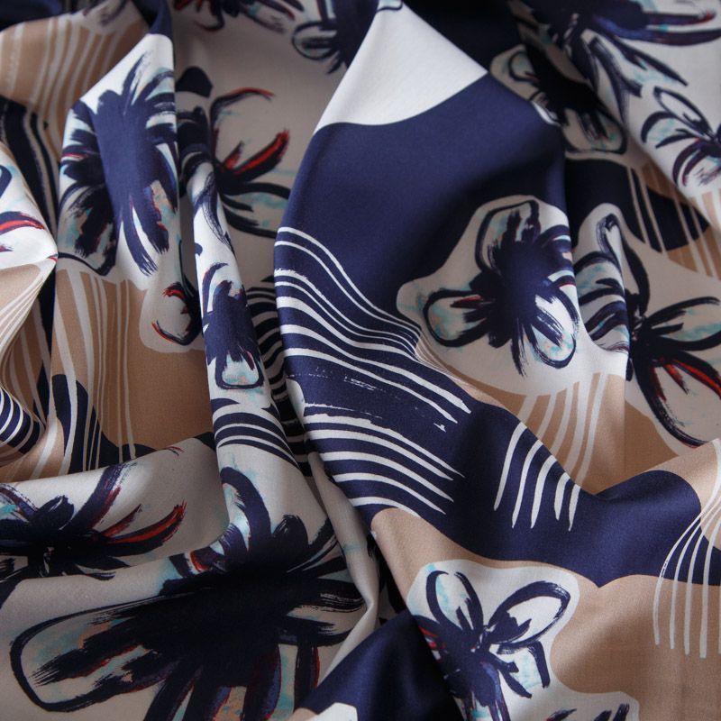 Итальянский хлопковый сатин из коллекции Saint Laurent с абстрактно-цветочным принтом. Поверхность ткани имеет сатиновое плетение и полированный лоск. Подойдет для пошива платьев, сарафанов, рубашек, топов, широких брюк, юбок.