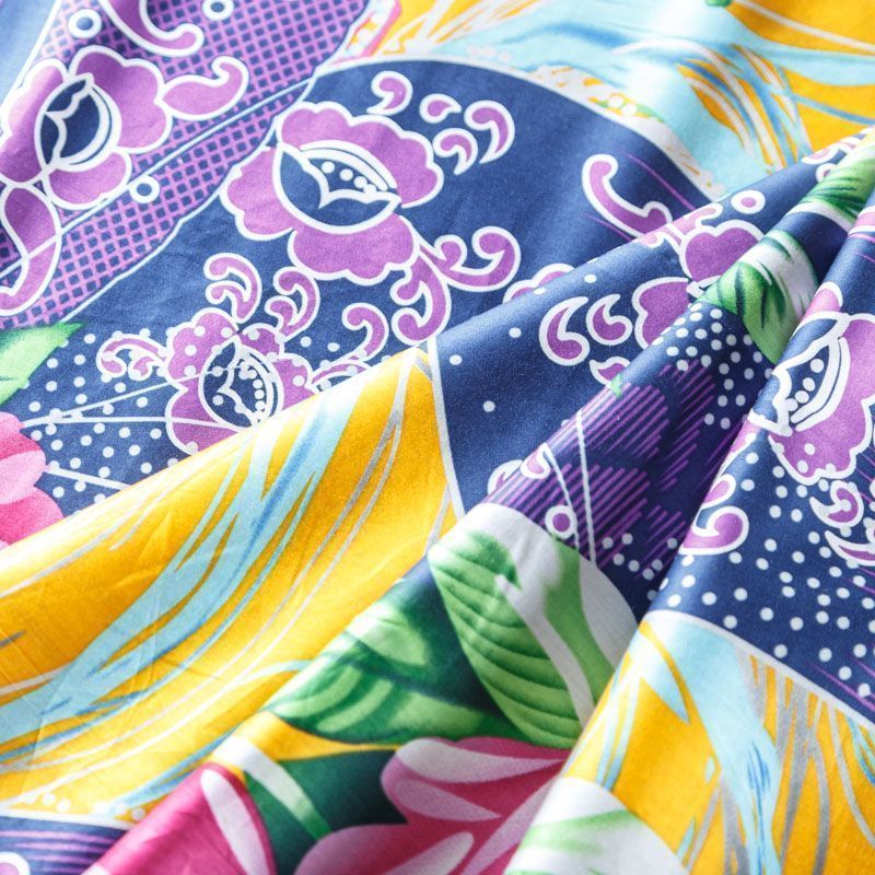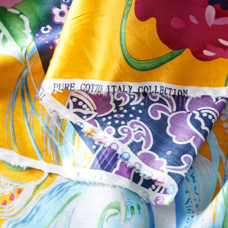 Итальянский плательно-рубашечный хлопок сатинового плетения с крупным ярким принтом. Ткань лёгкая, непрозрачная, поверхность матовая, гладкая, приятная к телу, хорошо драпируется. Прекрасно подойдет блузы, платья-рубашки, летнего сарафана, туники, домашней одежды.