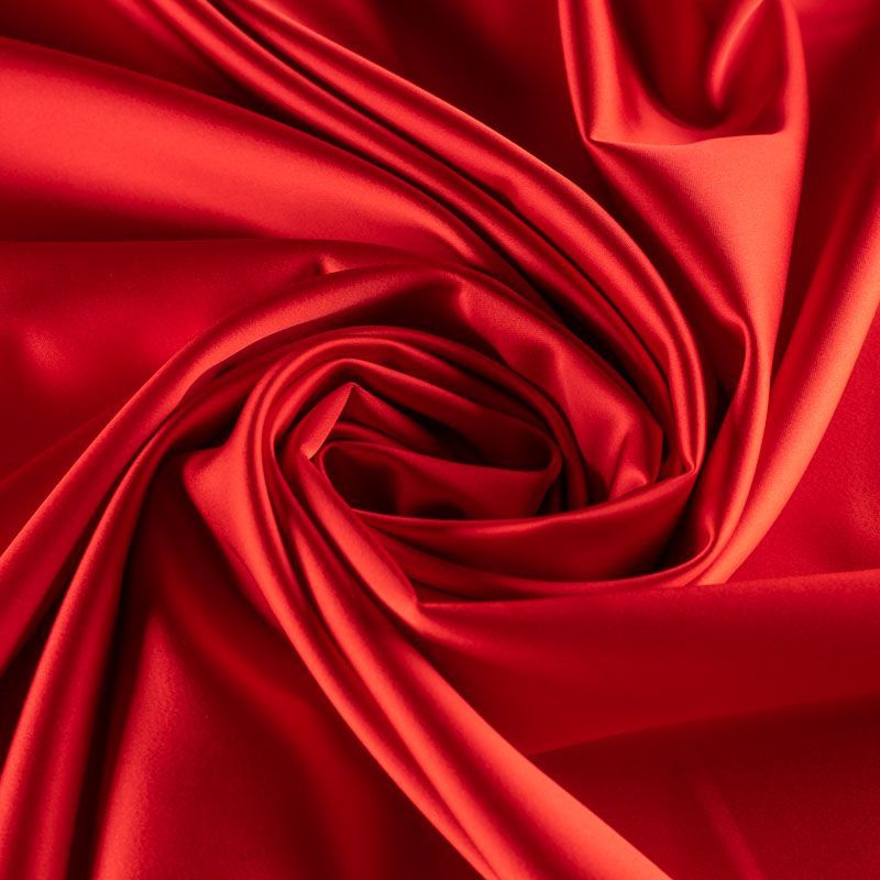 Ткань средней плотности, хорошо тянется, пластичная, отлично драпируется, держит форму, верхняя поверхность имеет благородный сатиновый блеск. Роскошный сатин идеален для пошива нарядных и повседневных платьев, костюмов, брюк, юбок, бомберов.