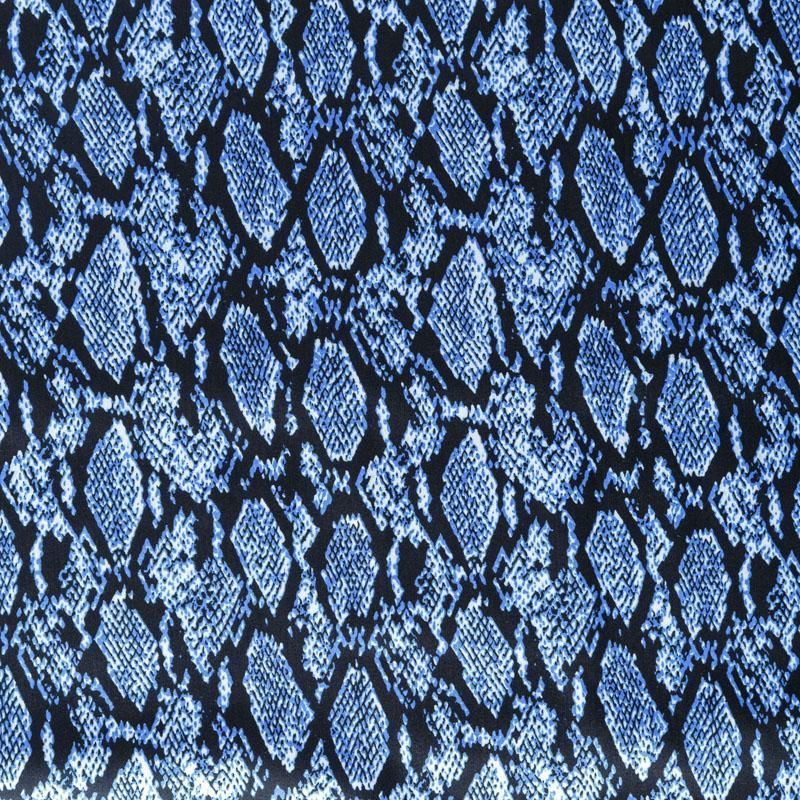 Сатин-коттон черного цвета со стилизованным анималистическим принтом, с гладкой поверхностью со сдержанным блеском, ткань средней плотности,  не толстая, хорошо держит форму, тянется за счет эластана в составе. Подойдет для пошива костюма, жакета, юбки, платья, брюк или шорт.