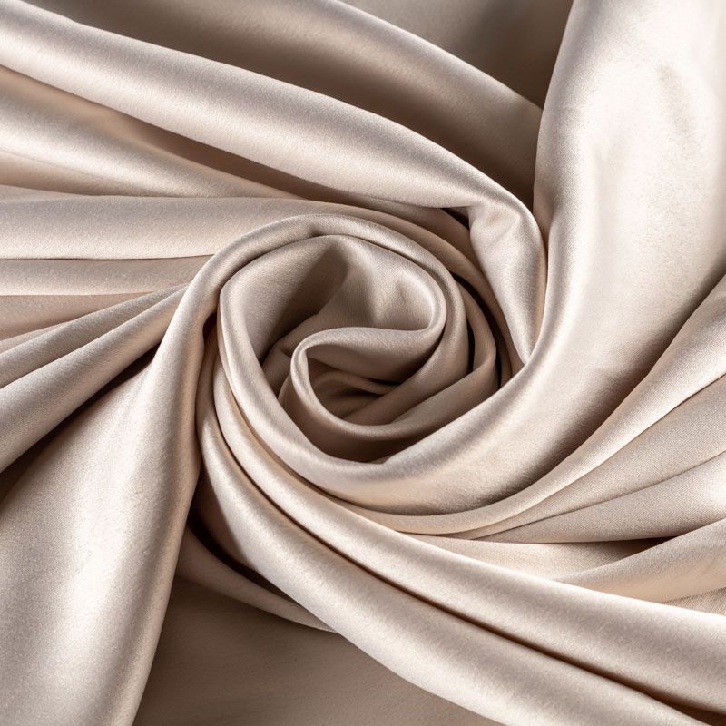Прочная костюмно-плательная ткань с гладкой шелковистой лицевой поверхностью. Приятная на ощупь, отлично драпируется. Ткань плотная с небольшим добавлением спандекса (стрейч), имеет матовый сатиновый, очень благородный блеск. Отлично подойдет для пошива практически любого изделия: платьев, костюмов, юбок, брюк, бомберов, а также свадебных и вечерних платьев, создания корсетов.