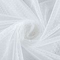 Тонкое, нежное, мягкое и прозрачное полотно, состоящее из мелких ячеек, на которых нанесены рельефные горошины.  Красиво драпируется, тянется, применяется для декорирования деталей одежды, например, рукавов изделия, для пошива нарядной и повседневной одежды: топов, блузок, пышных юбок и платьев.