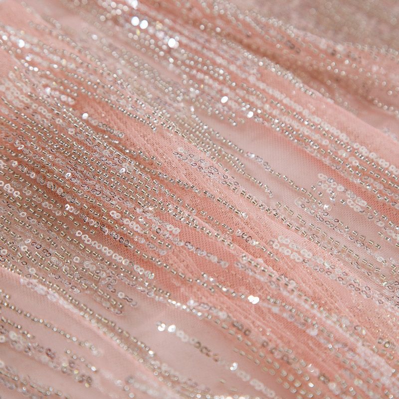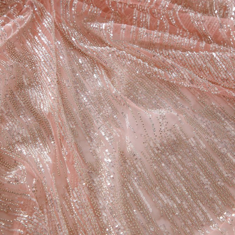 Мягкая сетка, густо расшитая пайетками и стеклярусом в тон полотна. Узор напоминает северное сияние, расположен по ширине полотна. Подходит для пошива нарядной одежды, платья, юбки, комбинезона. Требуется подклад, материал набирается объемом.