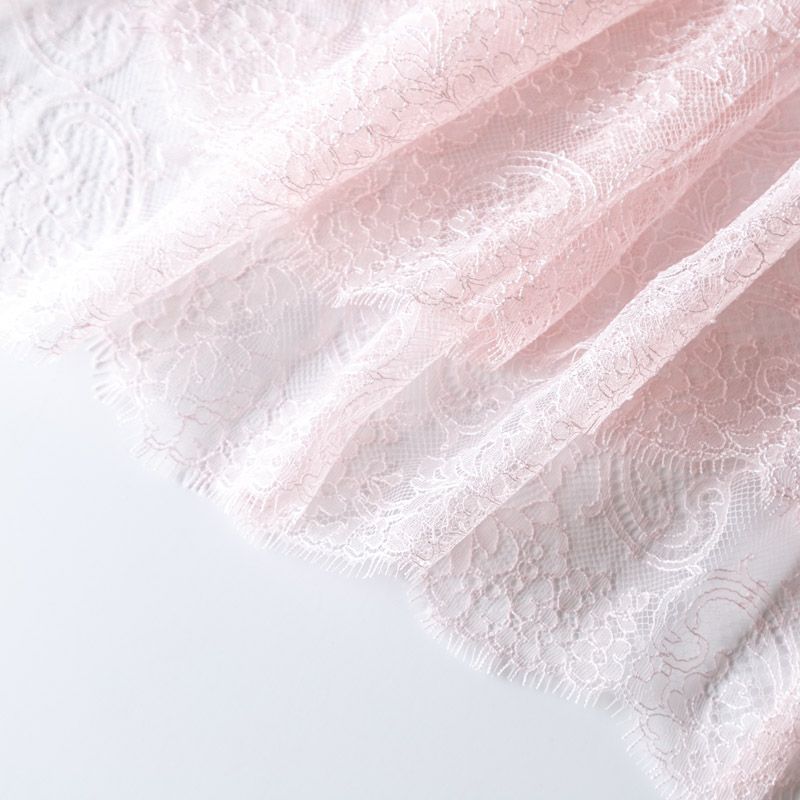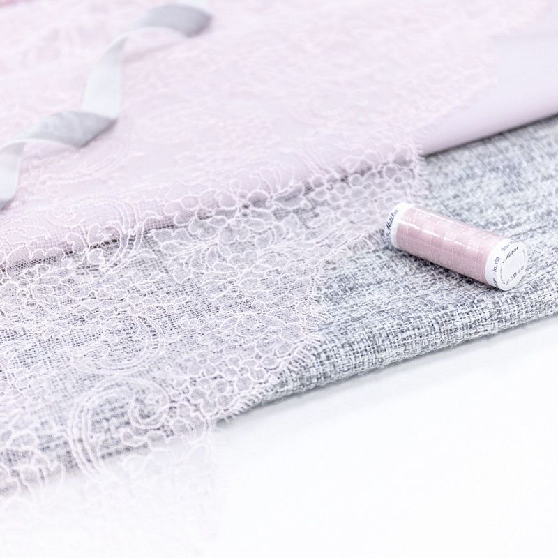 Французское шантильи разбеленного розового оттенка имеет тончайшее плетение волокон и состоит из нежнейшего кружева, которое используется для пошива свадебных нарядов, праздничных платьев. Вставки из кружева украсят любой офисный костюм, повседневное платье, юбку, блузу. Обе кромки кружева украшены фигурными фестонами.