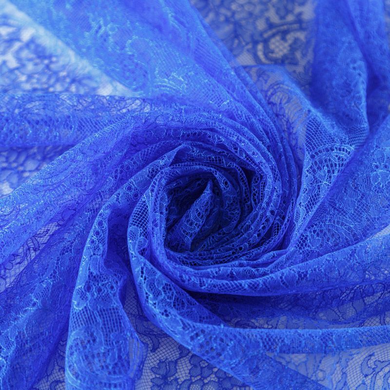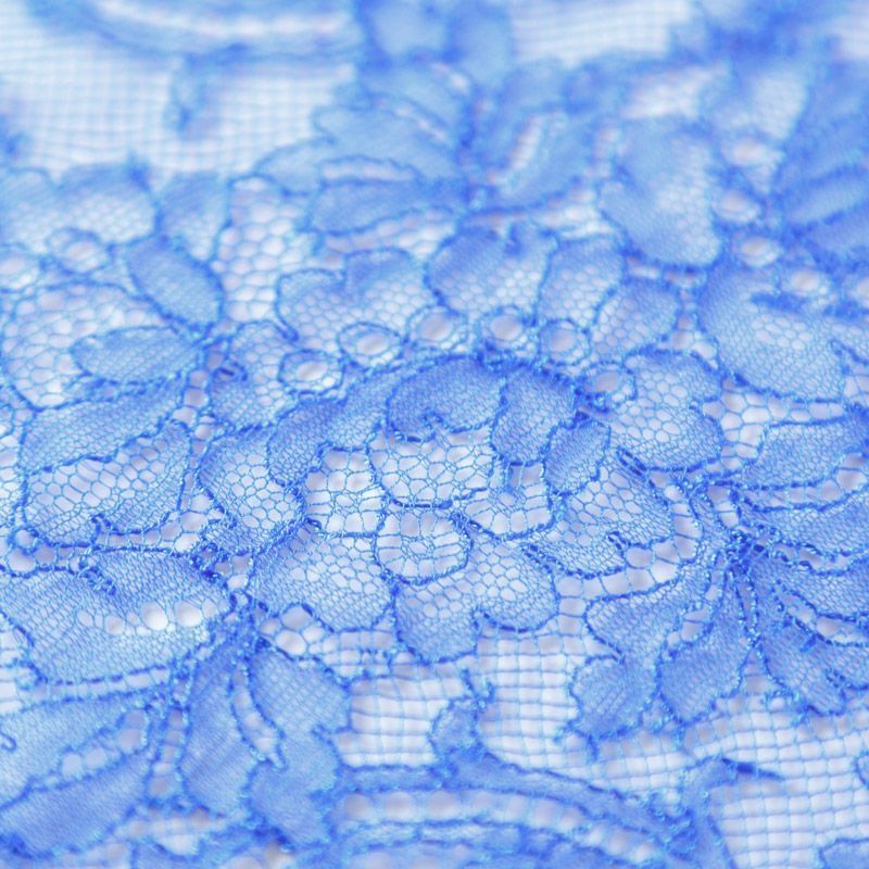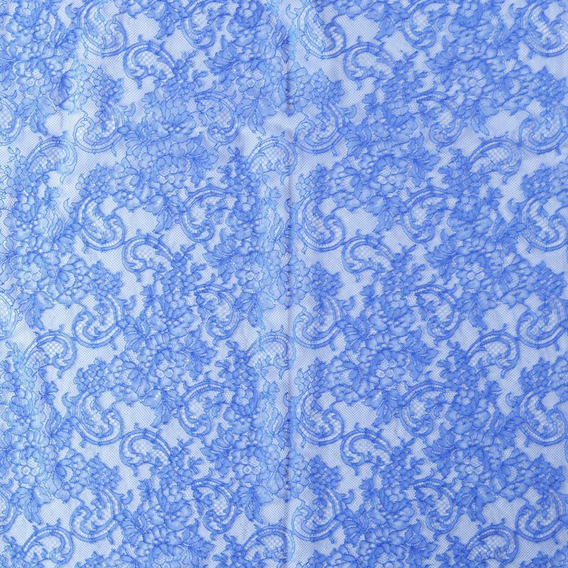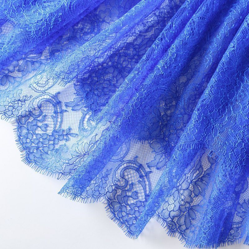 Французское шантильи ярко-синего оттенка имеет тончайшее плетение волокон и состоит из нежнейшего кружева, которое используется для пошива свадебных нарядов, праздничных платьев. Вставки из кружева украсят любой офисный костюм, повседневное платье, юбку, блузу. Обе кромки кружева украшены фигурными фестонами.
