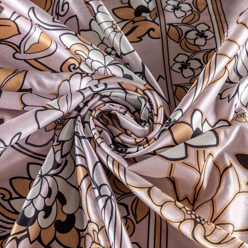 Шелк-батист натуральный К18-026 жемчужно-розовый принтованный в Ухте