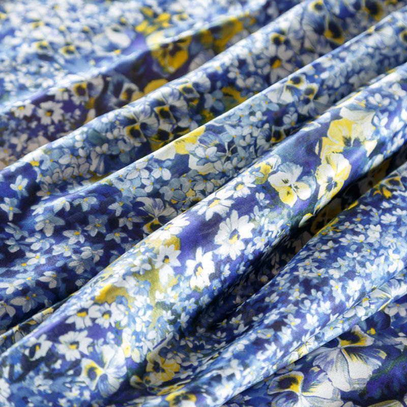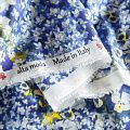 Очень красивый и нежный шелковый батист с добавлением хлопка в синем цвете с цветочным принтом. Ткань тонкая, мягкая и легкая, но достаточно плотная, не прозрачная, ее прикосновения к телу очень приятны, в изделии из него будет комфортно как в жару, так и в прохладную погоду. Лицевая сторона гладкая, с легким сатиновым блеском. Прекрасно подойдет для пошива летнего сарафана, платья, блузки, топа, туники, костюма в пижамном стиле, широких брюк или юбки.
