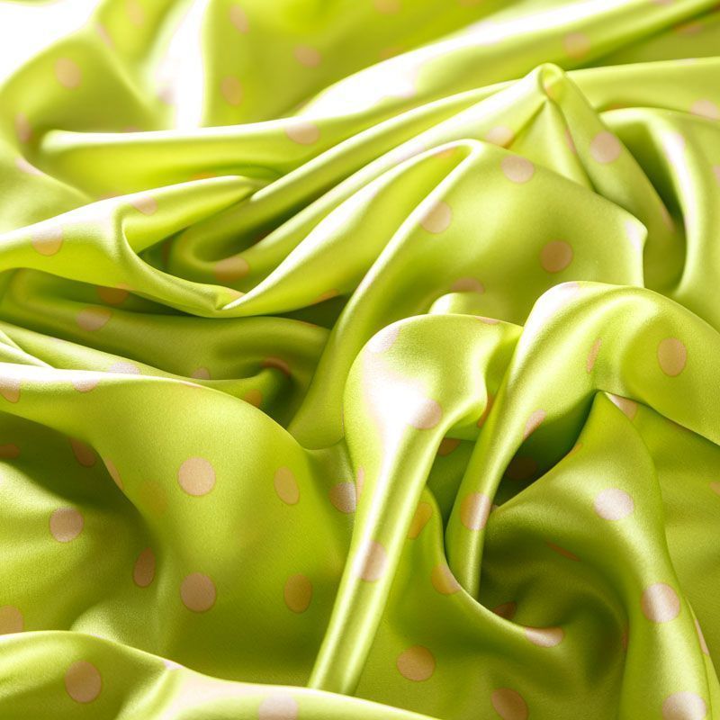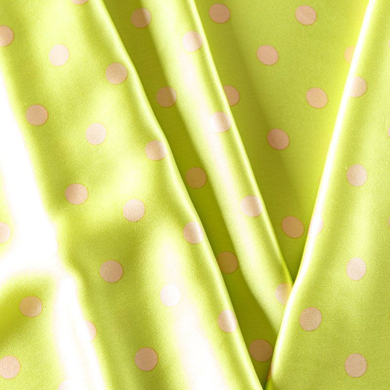 Итальянский атласный шелк в "аристократический" горошек на ярком фоне. Ткань тонкая, легкая, струится, хорошо драпируется. Поверхность гладкая, имеет благородный блеск. Подойдет смелых образов: летних платьев и сарафанов, как летящих фасонов, так и скроенных по косой, накидок, юбок, блузок, костюмов в пижамном стиле, туники, широких брюк, домашней одежды.