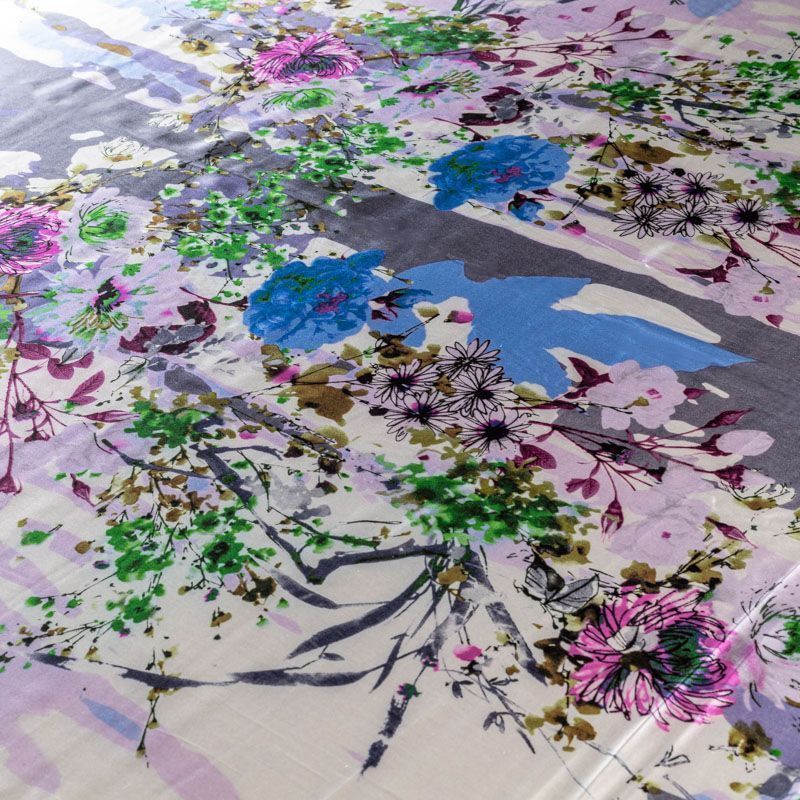 Шелк натуральный К01-008 молочный принтованный в Ухте
