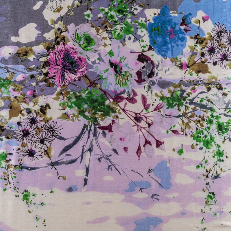Итальянский атласный шелк с цветным растительным принтом. Вдоль кромки оформлен абстрактными полосками в тон рисунку. Можно использовать в изделии по длине ткани и объемом. Ткань средней плотности, не просвечивает, струится, хорошо драпируется. Поверхность глядкая, имеет благородный сатиновый блеск. Подойдет для смелых образов: летних платьев и сарафанов, как летящих фасонов, так и скроенных по косой, накидок, юбок, блузок, костюмов, широких брюк, домашней одежды.