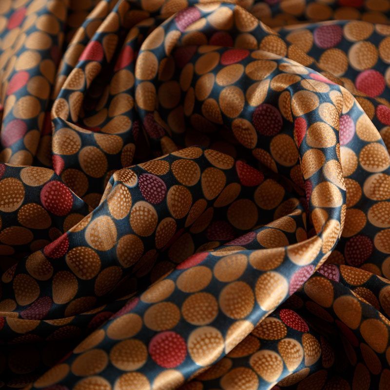 Итальянский атласный шелк с геометрическим принтом в карамельно-красных оттенках. Ткань тонкая, не просвечивает, отлично драпируется, легкая и струящаяся. Идеально подойдет для пошива платьев и сарафанов расклешенных моделей, с воланами, летящих юбок, топов, блузки, костюма в пижамном стиле.
