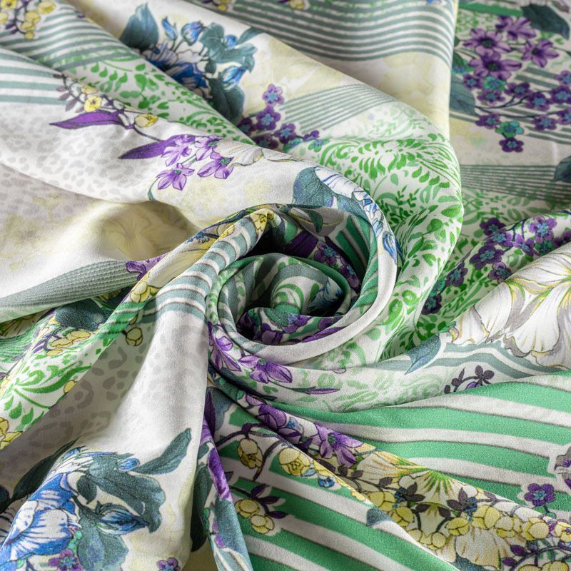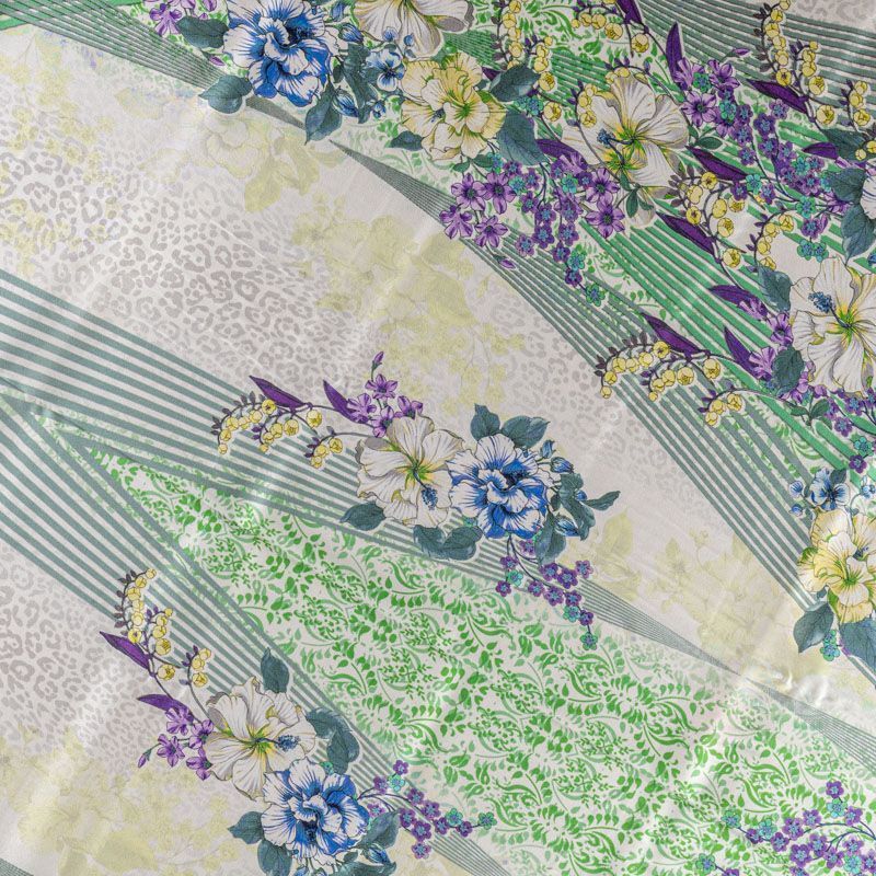 Шелк натуральный К06-0093 молочный принтованный в Ухте