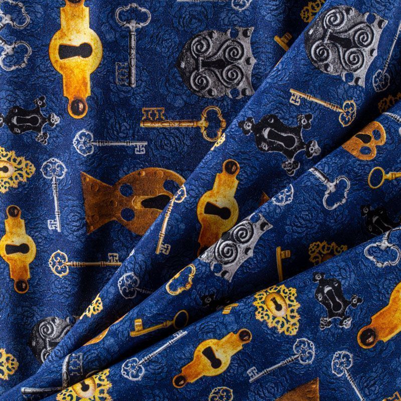 Итальянский матовый шелк насыщенного синего оттенка с узнаваемым принтом от известного бренда. Ткань тонкая, не просвечивается, отлично драпируется, легкая и струящаяся, тянется за счет эластана в составе, лицевая сторона креповая, изнанка - атласная. Идеально подойдет для пошива платьев и сарафанов расклешенных моделей, с воланами, рюшами, летящих юбок, топов, блузки, рубашки, костюма в пижамном стиле.