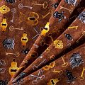 Итальянский матовый шелк коричневого оттенка с узнаваемым принтом от известного бренда. Ткань тонкая, не просвечивается, отлично драпируется, легкая и струящаяся, тянется за счет эластана в составе, лицевая сторона креповая, изнанка - атласная. Идеально подойдет для пошива платьев и сарафанов расклешенных моделей, с воланами, рюшами, летящих юбок, топов, блузки, рубашки, костюма в пижамном стиле.
