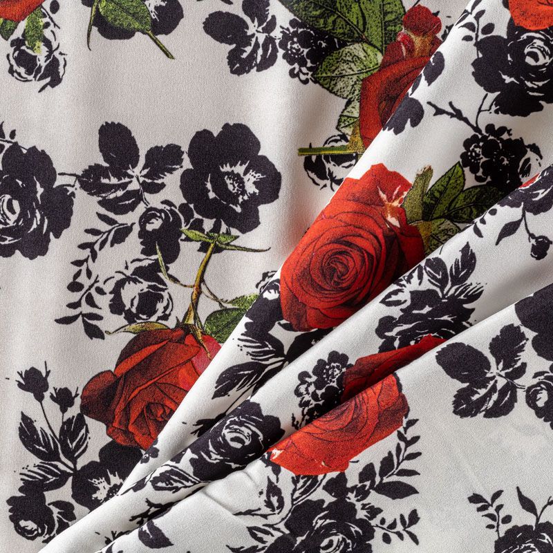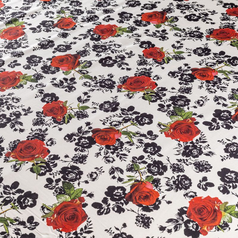 Итальянский матовый шелк с монохромный принтом и яркими акцентами на белом фоне, тонкий, слегка прозрачный, отлично драпируется, легкий и струящийся. Идеально подойдет для пошива платьев и сарафанов расклешенных моделей, с воланами, рюшами, летящих юбок, топов, блузки, рубашки, костюма в пижамном стиле.