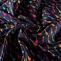 Натуральный шелк с матовой поверхностью, легкий, струящийся, хорошо драпируется, тянется за счет эластана в составе. Модный принт выполнен в ярких оттенках, который будет уместен для пошива летнего сарафана, платья, блузки, костюма в пижамном стиле, широких брюк или юбки.