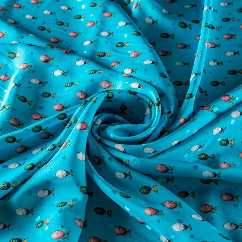 Шелк натуральный К13-350 лазурно-голубой принтованный в Ухте
