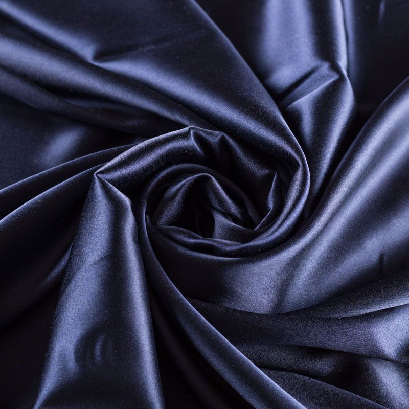 Блузочно-плательный атласный шелк с эластаном глубокого синего цвета. Невесомая гладкая ткань приятно прилегает к телу, дарит ощущение прохлады и нежно струится. Небольшой процент эластана делает материал упругим и растяжимым. Ткань не просвечивает, идеально подойдет для платья, блузки, рубашки, шелкового топа, юбки, актуальна для пижамы и комбинации.