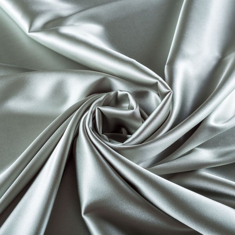 Блузочно-плательный атласный шелк с эластаном серебристо-серого оттенка. Невесомая гладкая ткань приятно прилегает к телу, дарит ощущение прохлады и нежно струится. Небольшой процент эластана делает материал упругим и растяжимым. Ткань не просвечивает, идеально подойдет для платья, блузки, рубашки, шелкового топа, юбки, актуальна для пижамы и комбинации.