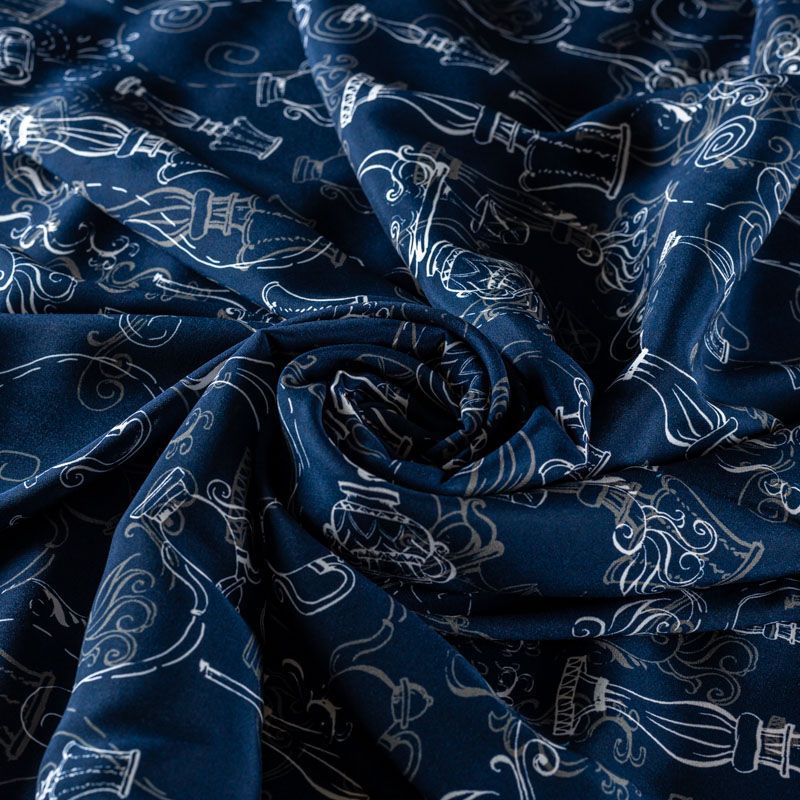 Шелк натуральный К15-318 темно-синий принтованный в Ухте