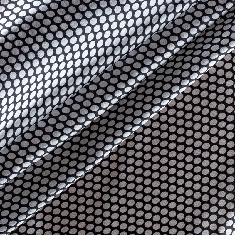 Итальянский атласный шелк с классическим принтом "в горошек", тонкий, слегка прозрачный, отлично драпируется, легкий и струящийся. Идеально подойдет для пошива платьев и сарафанов расклешенных моделей, с воланами, летящих юбок, топов, блузки, костюма в пижамном стиле.