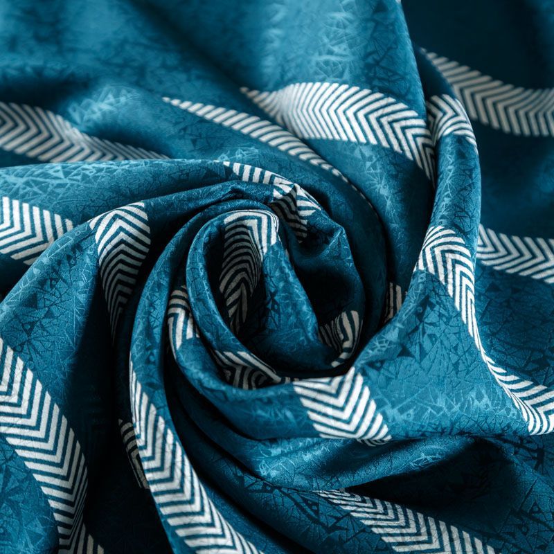 Итальянский купонный матовый жаккардовый шелк с геометрическим принтом. Ткань средней плотности, не просвечивает, струится, хорошо драпируется. Поверхность глядкая, имеет благородный сатиновый блеск. Подойдет смелых образов: летних платьев и сарафанов, как летящих фасонов, так и скроенных по косой, накидок, юбок, блузок, костюмов, широких брюк, домашней одежды.