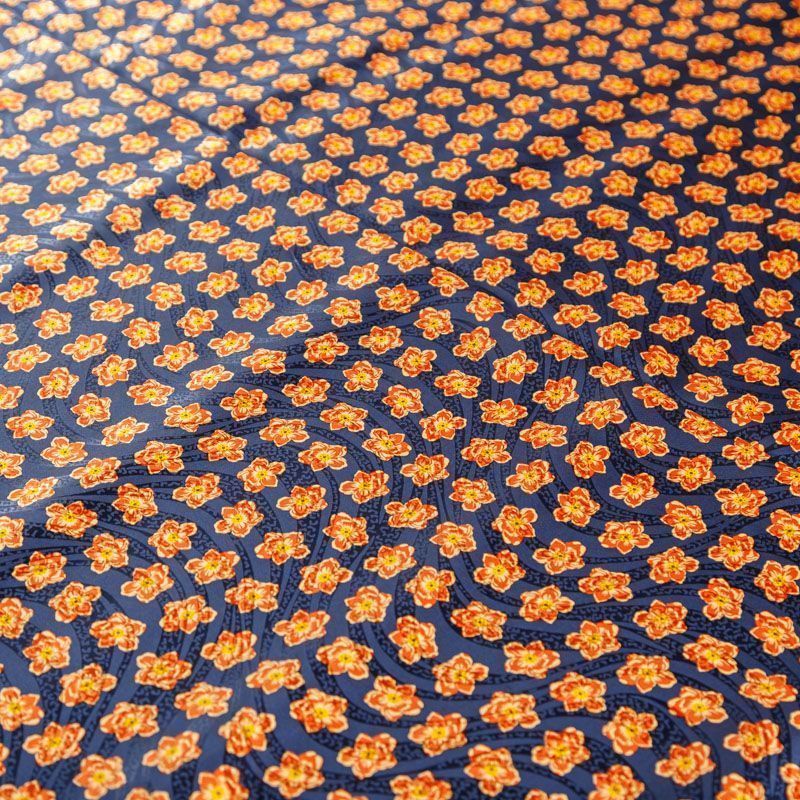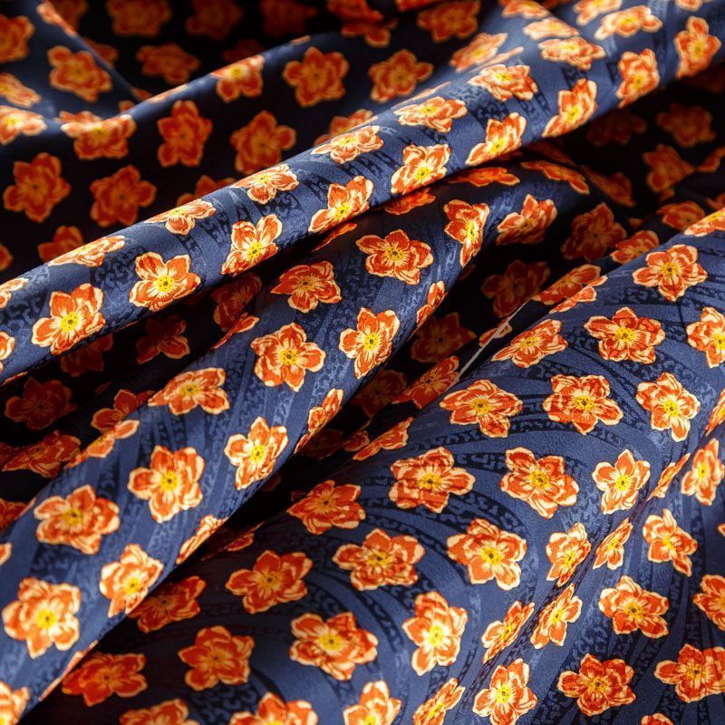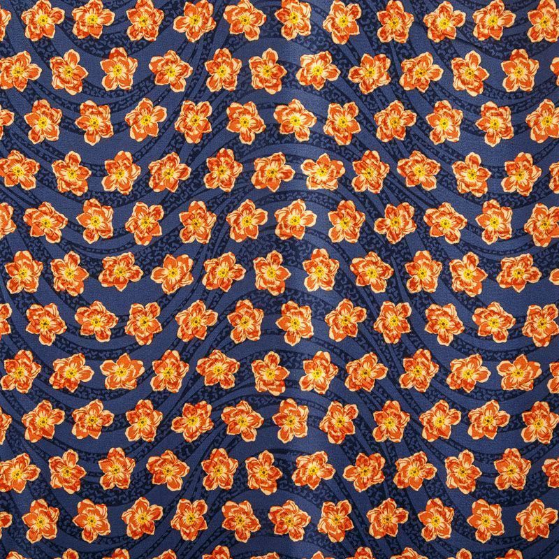 Итальянский матовый жаккардовый шелк с ярким цветочным принтом. Ткань средней плотности, не просвечивает, струится, хорошо драпируется. Поверхность глядкая, имеет благородный сатиновый блеск. Подойдет смелых образов: летних платьев и сарафанов, как летящих фасонов, так и скроенных по косой, накидок, юбок, блузок, костюмов, широких брюк, домашней одежды.