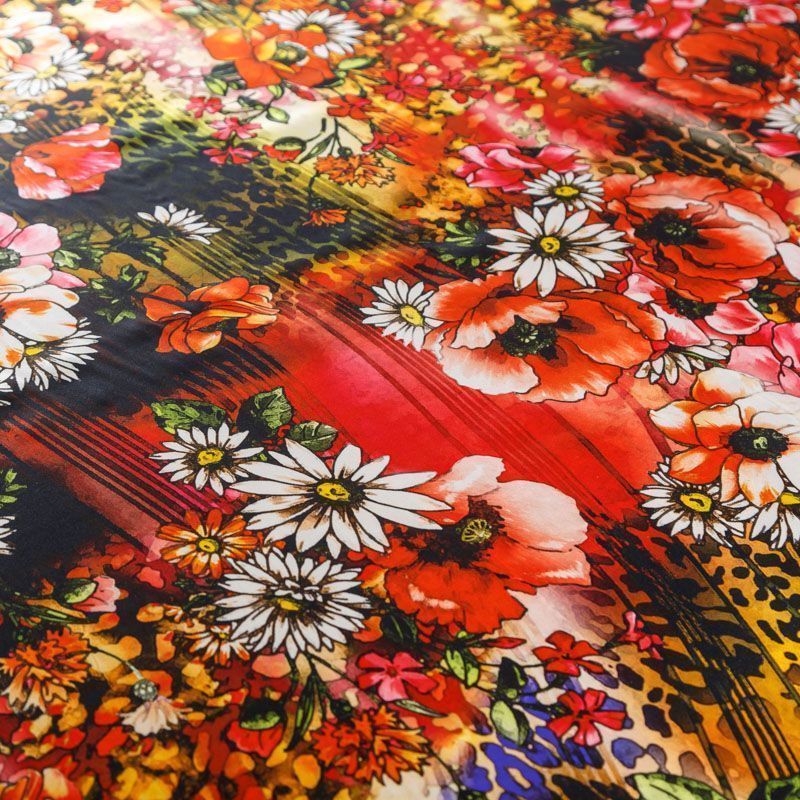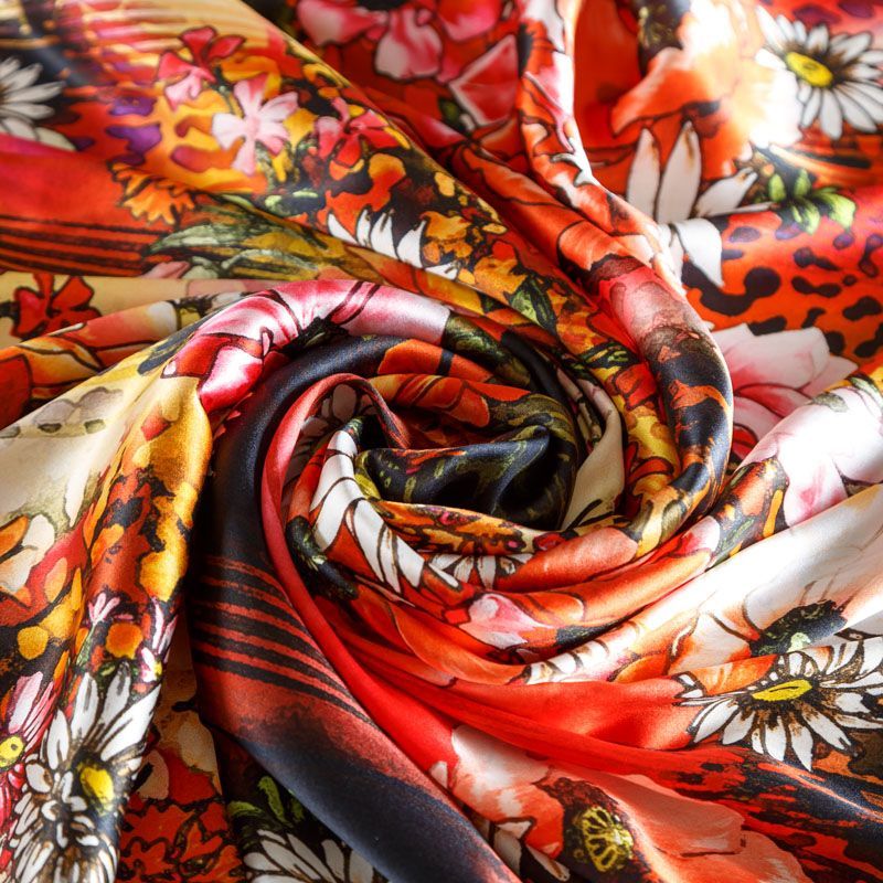 Шелк натуральный К23-178 красный принтованный в Ухте