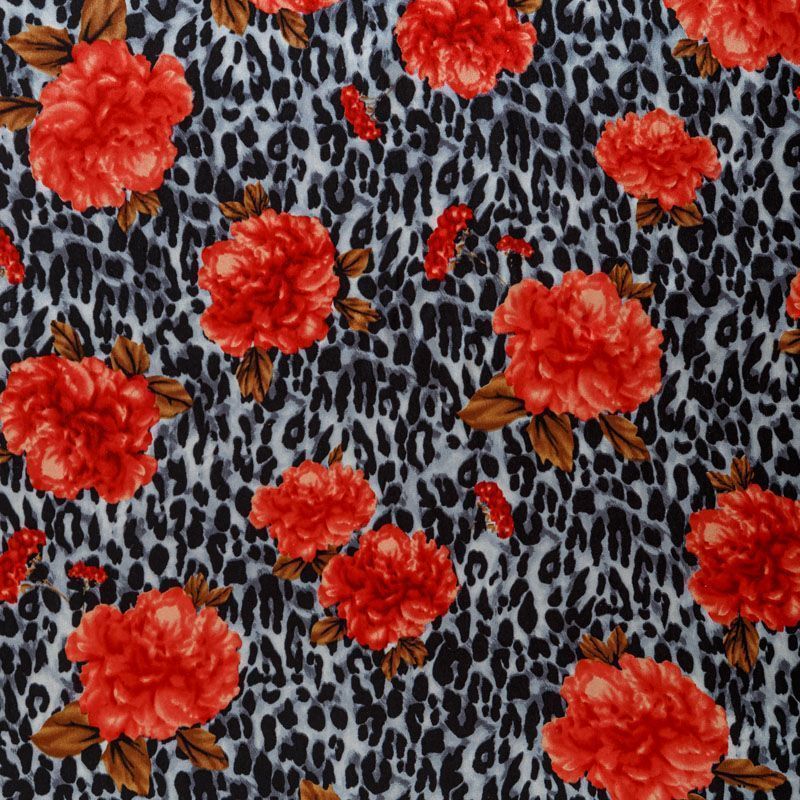 Шелк натуральный К28-0011 серый принтованный