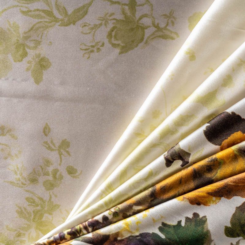 Шелк натуральный К2-394 молочный принтованный в Ухте