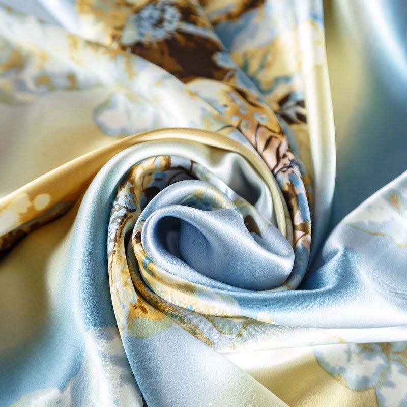 Шелк натуральный К30-242 бежево-голубой принтованный в Ухте