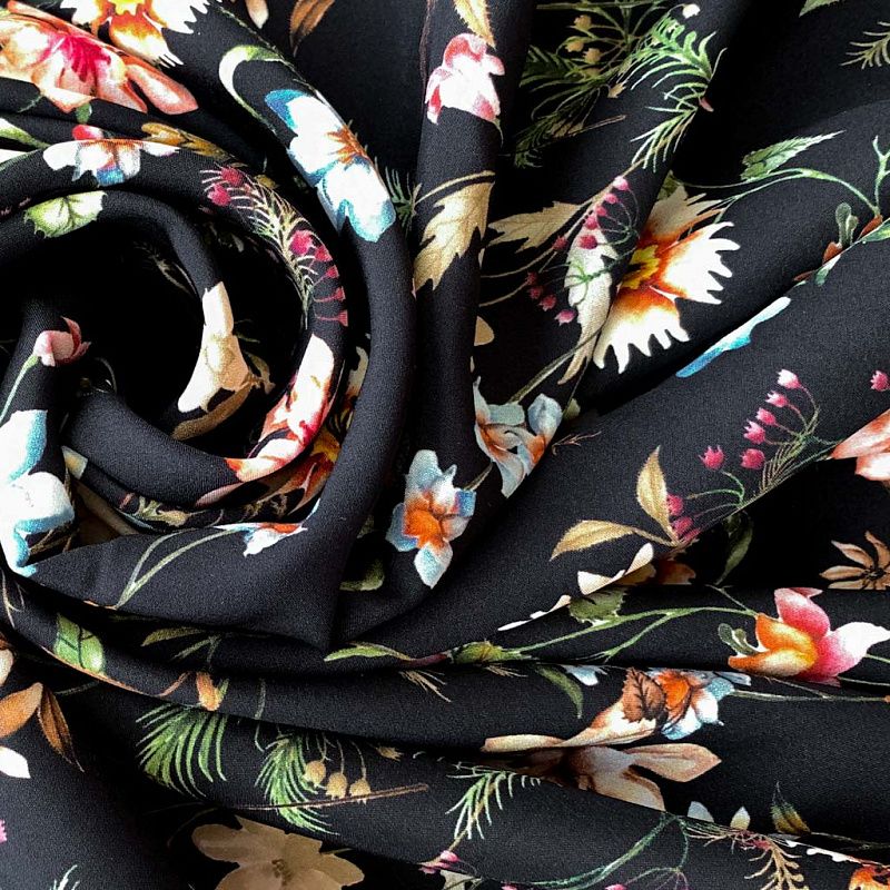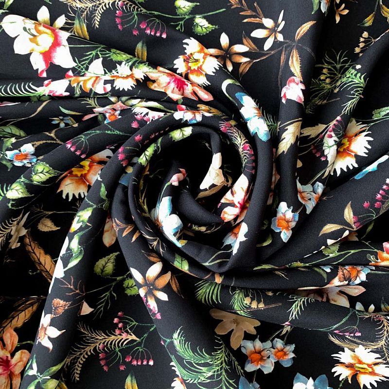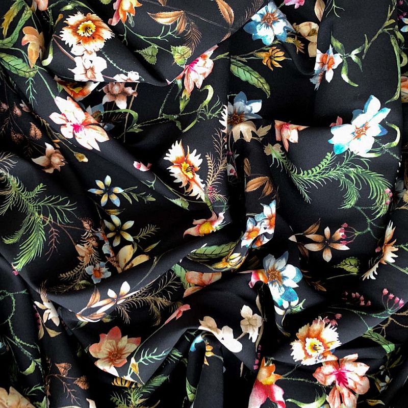 Шелк натуральный К32-158 черный принтованный в Ухте