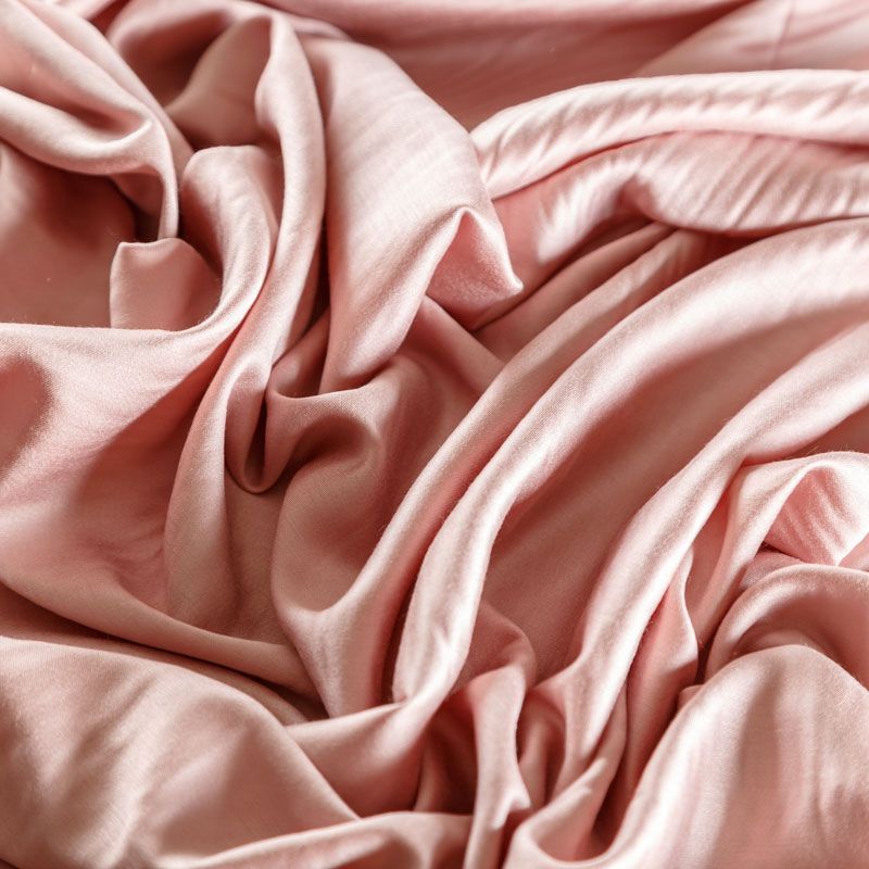 Плательно-блузочный штапель с добавлением шелка в розовом оттенке. Мягкий, нежный, пластичный, шелковистый на ощупь, хорошо драпируется, практичный, тянется за счет эластана в составе. Особенно актуален летом, он очень легкий, обволакивающий прохладой. Идеален для пошива летней детской одежды, сарафанов, платьев, юбок, блузок, домашней одежды: халатов, ночной пижамы.