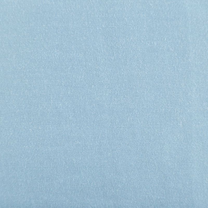 Плательно-блузочный штапель с добавлением шелка в голубом оттенке. Мягкий, нежный, пластичный, шелковистый на ощупь, хорошо драпируется, практичный, тянется за счет эластана в составе. Особенно актуален летом, он очень легкий, обволакивающий прохладой. Идеален для пошива летней детской одежды, сарафанов, платьев, юбок, блузок, домашней одежды: халатов, ночной пижамы.