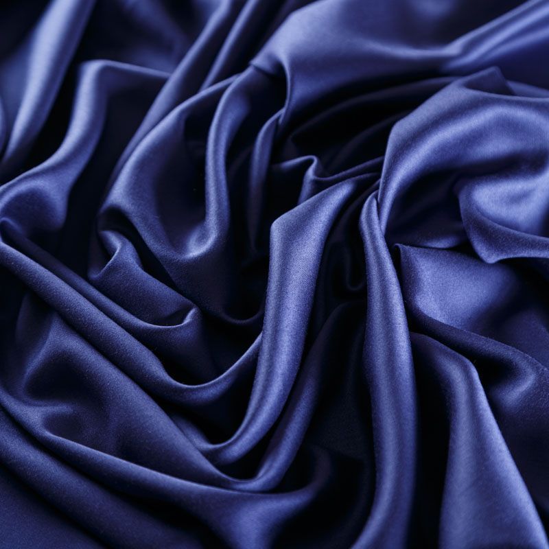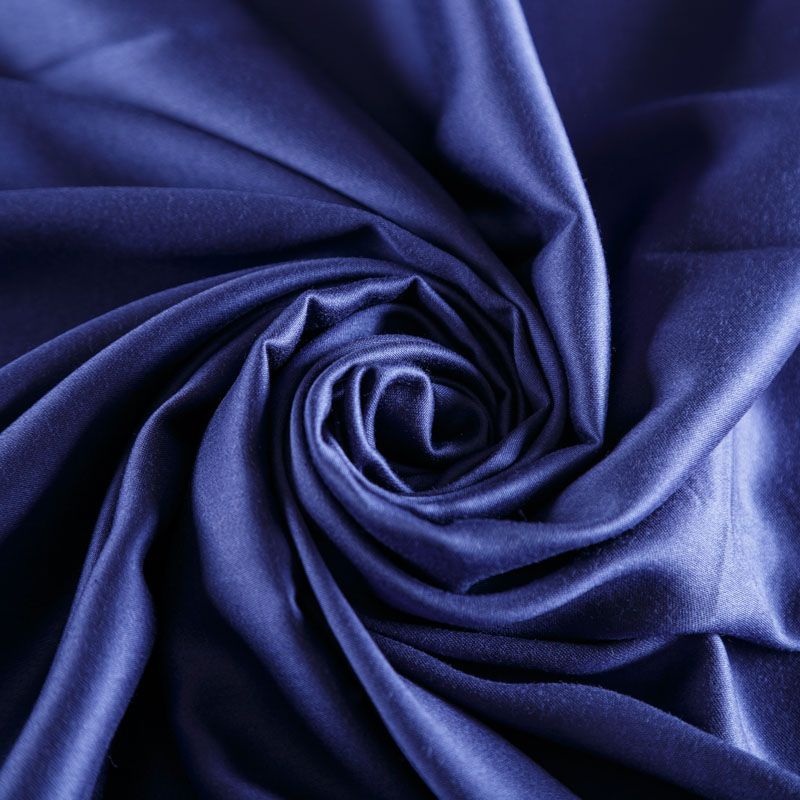 Плательно-блузочный штапель с добавлением шелка в чернильном оттенке. Мягкий, нежный, пластичный, шелковистый на ощупь, хорошо драпируется, практичный, тянется за счет эластана в составе. Особенно актуален летом, он очень легкий, обволакивающий прохладой. Идеален для пошива летней детской одежды, сарафанов, платьев, юбок, блузок, домашней одежды: халатов, ночной пижамы.