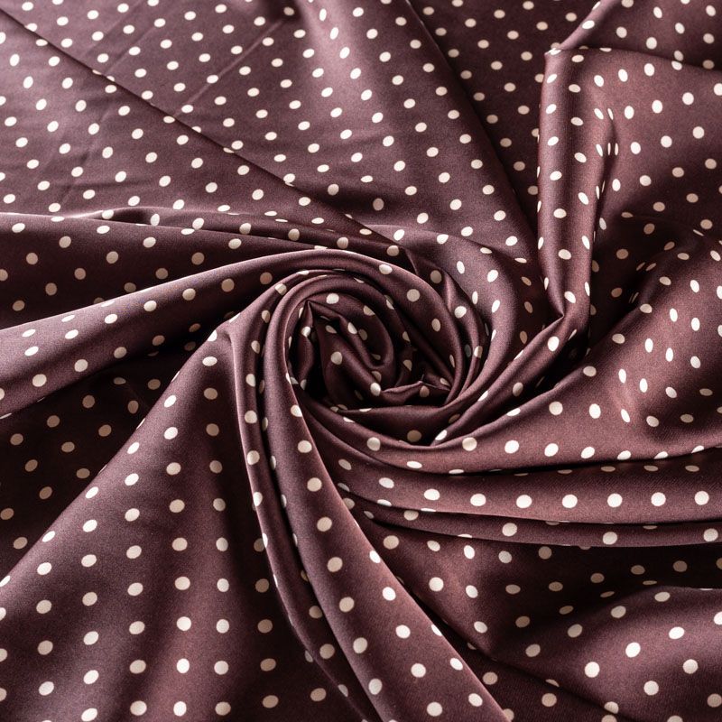 Тонкая, легкая, струящаяся ткань, не просвечивает, очень нежная и прятная к телу, обладает благородным атласным блеском, хорошо драпируется, тянется за счет эластана в составе. Идеально подойдет для пошива блузок, платьев и юбок, а также топов, платков, домашней одежды.