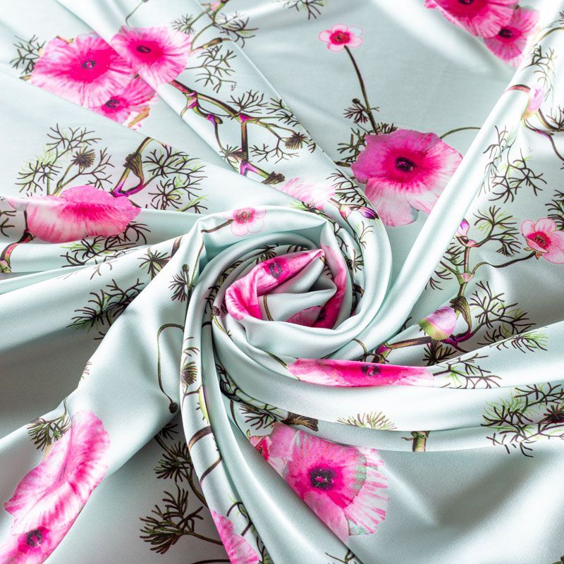 Шелк синтетический 065-01533 серо-мятный принтованный в Ухте