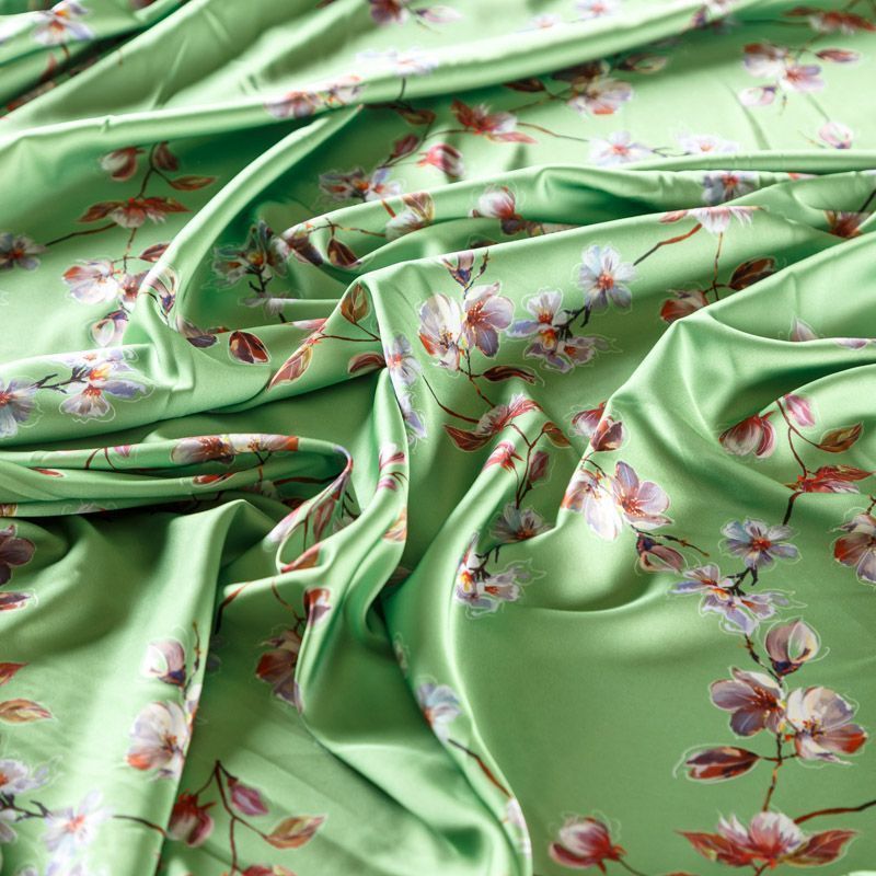 Шелк синтетический К33-044 зеленое яблоко принтованный