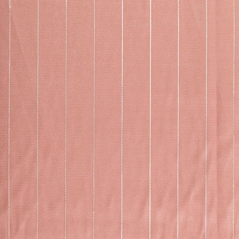 Тонкая, легкая, струящаяся ткань, декорированная тонкими вертикальными полосками люресовой нити, не просвечивает, очень нежная и прятная к телу, обладает благородным атласным блеском, хорошо драпируется, тянется за счет эластана в составе. Идеально подойдет для пошива блузок, платьев и юбок, а также топов, платков, домашней одежды.
