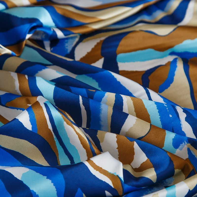 Шелк синтетический стрейч 065-17539 сине-голубой принтованный в Ухте