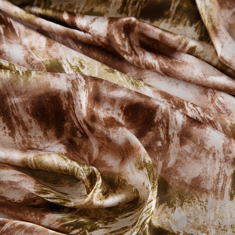 Шелк синтетический стрейч 065-17542 бежево-оливковый принтованный