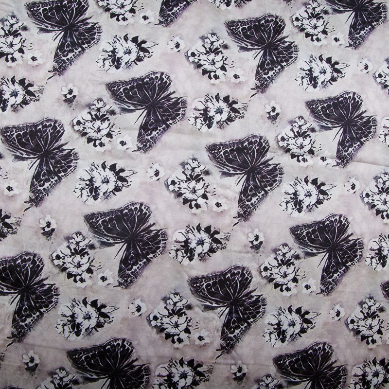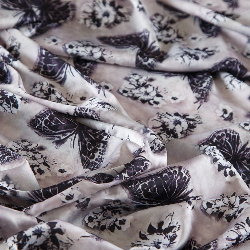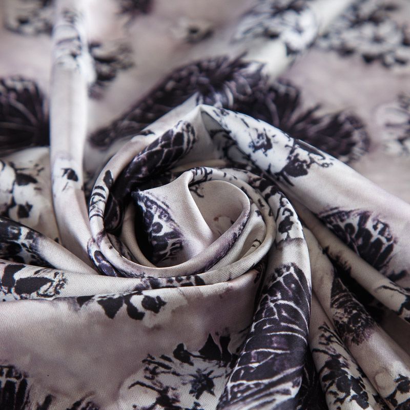 Шелк синтетический стрейч 065-17784 черый принтованный в Ухте