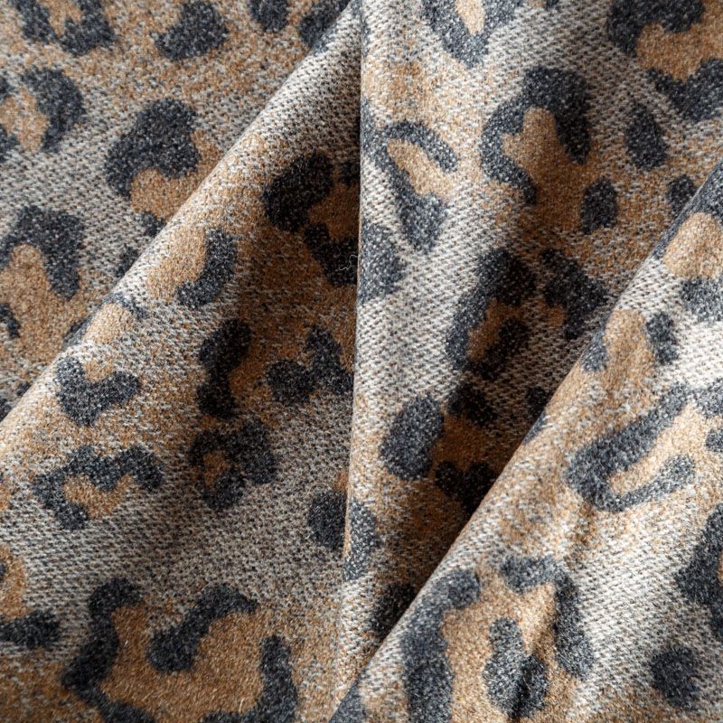 Плотная костюмно-пальтовая итальянская шерсть в сером оттенке с трендовым анималистическим принтом. Ткань мягкая, пластичная, хорошо держит форму и драпируется. Идеальный вариант для пошива стильного жакета, кардигана, жилета, легкого пальто или пончо, а также для мягкого уютного бомбера, шарфа или палантина.